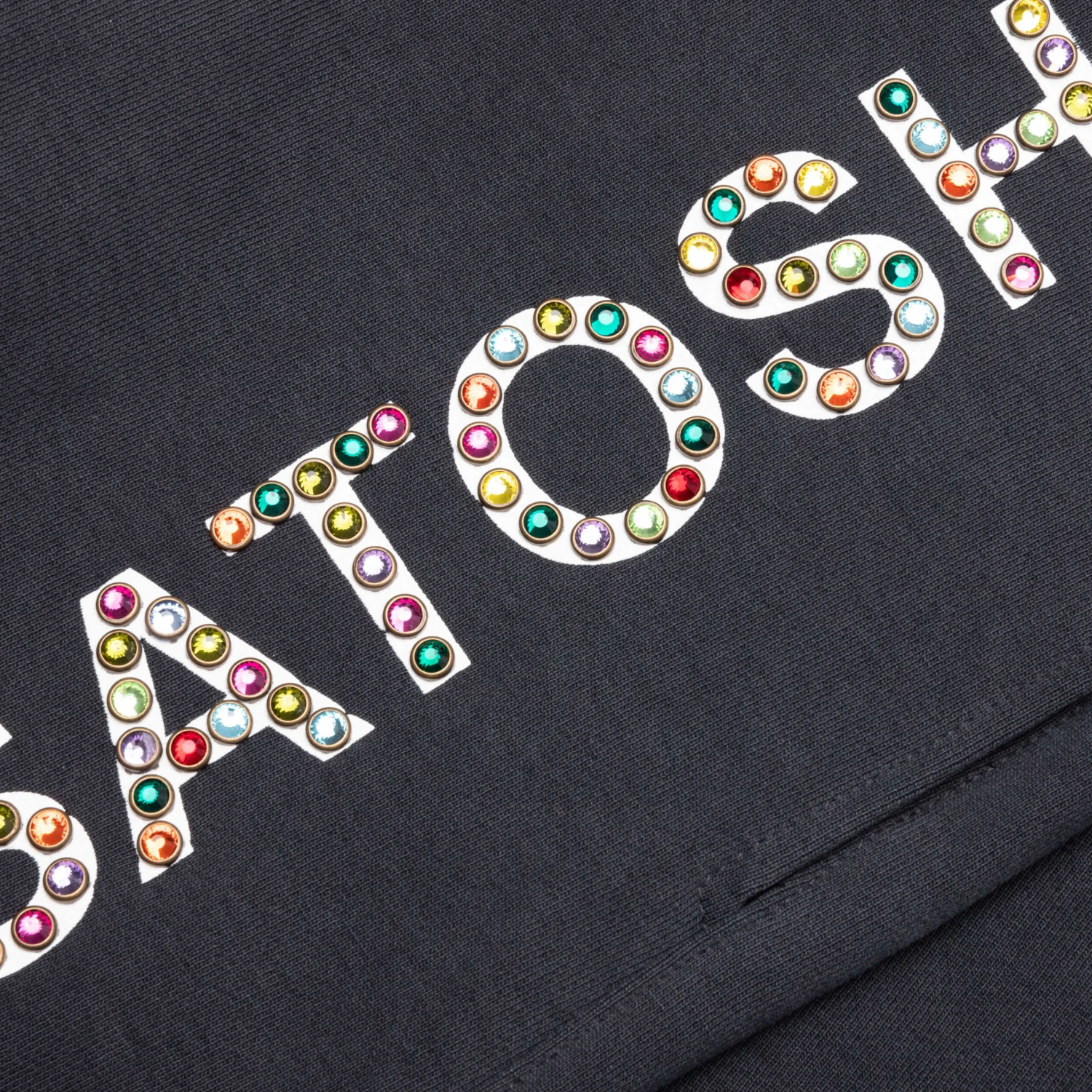 Make a statement in the Satoshi Nakamoto Studded Logo Short. Composed of 100% Cotton, the shorts are elevated by rhinestone logo branding on the leg. An elastic waistband and drawstring chord complete the look.