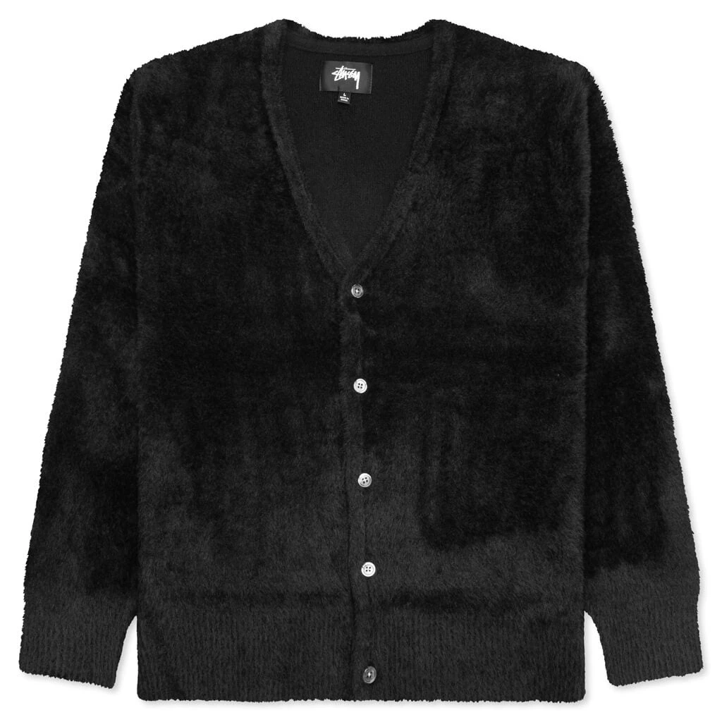 Elevate your look with the Stussy Shaggy Cardigan. This Classic silhouette is made from a nylon and acrylic blend and features a shaggy all-over texture. The garment has a pearl button closure, ribbed trims, and a Stussy stock flag label that completes the look.
