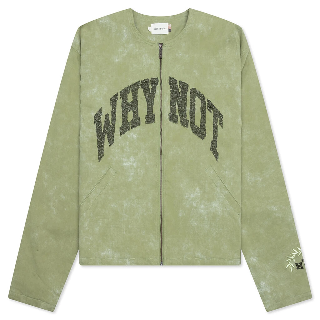 Honor the Gift introduces the Twill Washed Jacket in their latest collection. Made from a cotton and spandex blend, it features a soft lining for a smooth, cozy feel. The collarless neckline creates a sleek profile, while the washed finish makes it feel worn-in. Functional details include a full-zip closure with custom zipper pull and side-entry pockets. Decorated with embroidered details on the front and sleeve.