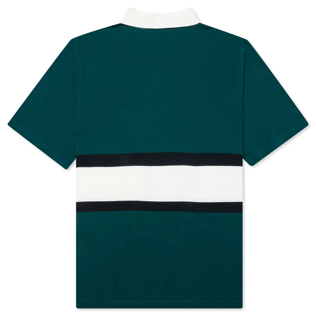 By Parra’s Winged Logo Polo Shirt makes a statement with its unique aesthetic. The silhouette features a cotton construction along with woven stripes at the front and rear. Brand embroidery resides at the front, while the two-button placket connects to a contrasting pointed collar for a finishing touch.